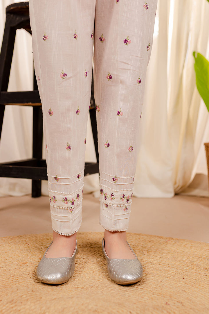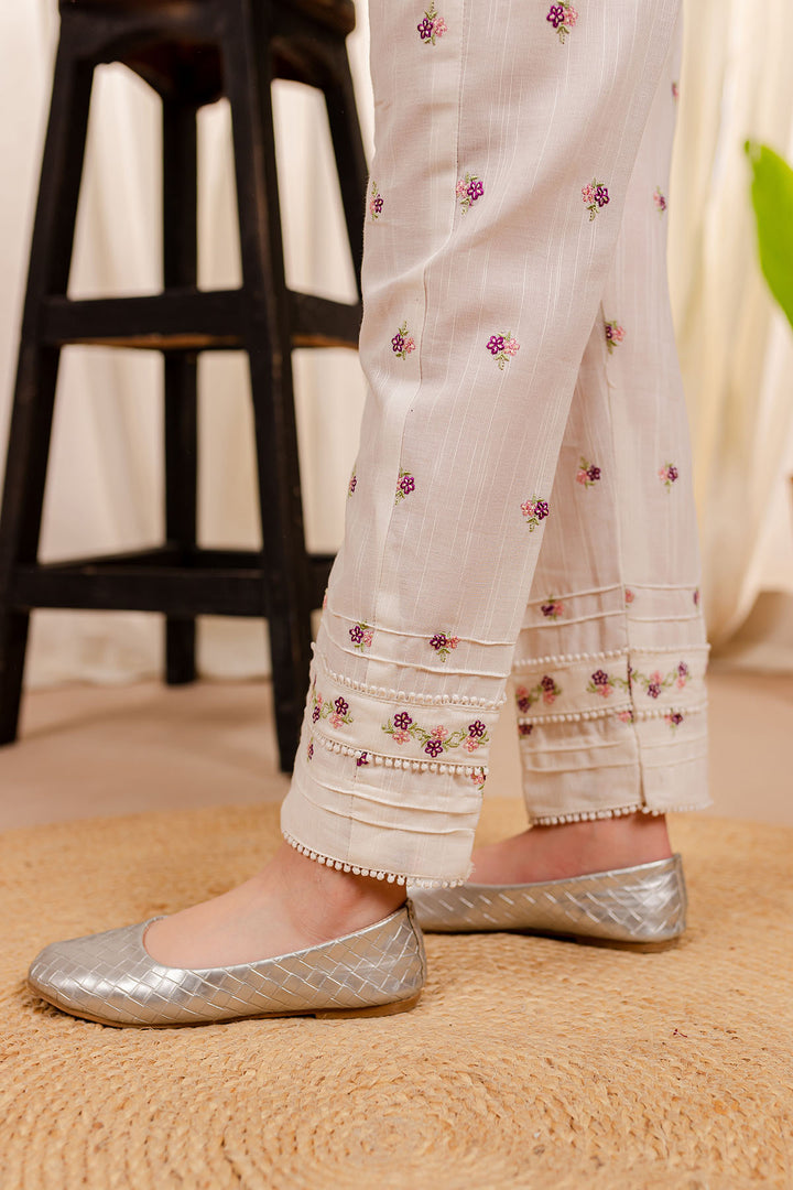 Details : Off White embroidered khaddar Trousers