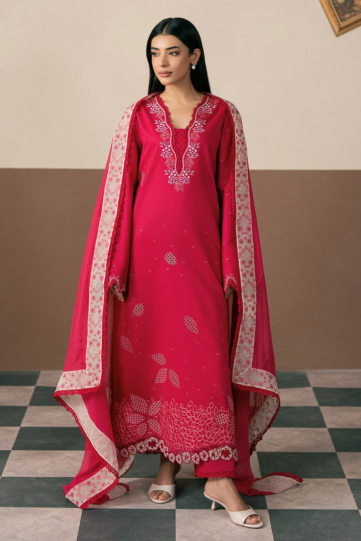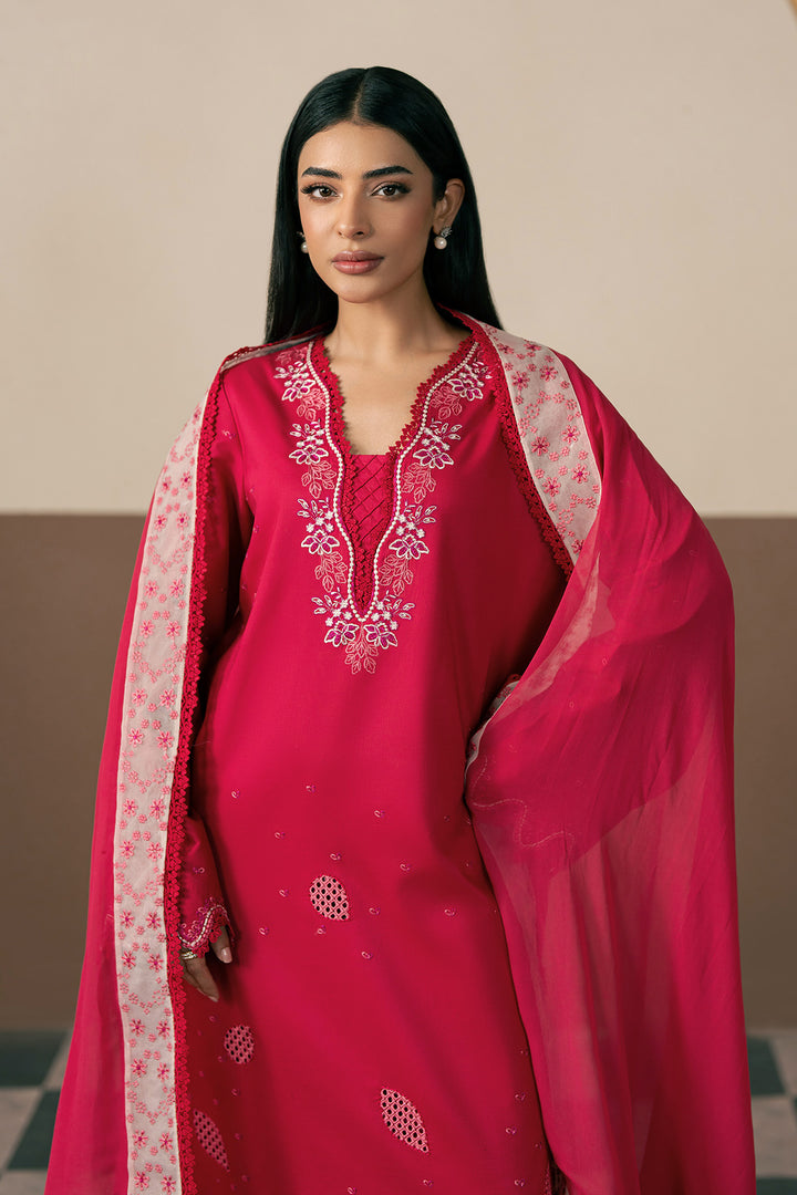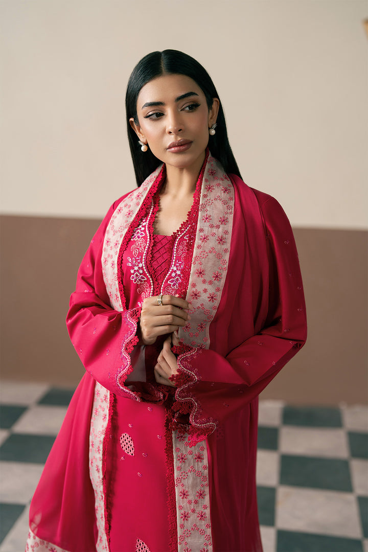 Cambric that breathes, with pintucks that whisper detail at the neck. A chiffon dupatta floats light, while cambric trousers keep the ease intact. Simple, with intent.